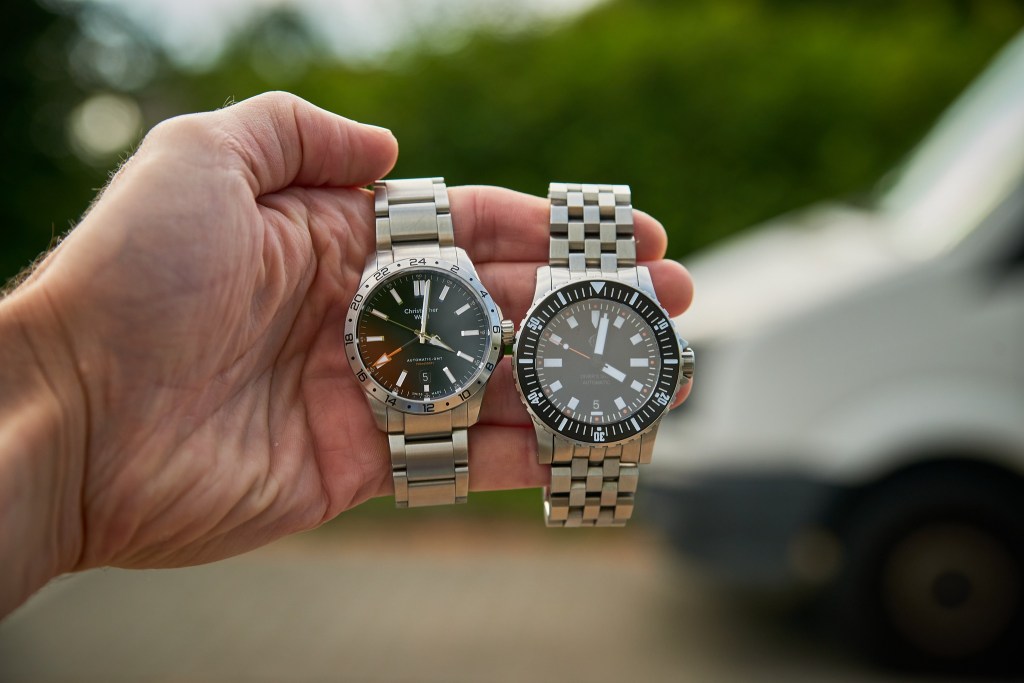 I jak się okazało, te dwa sikory mają ze sobą całkiem sporo wspólnego, generalnie w dziedzinie palety kolorów. Obydwa to stalowe zegarki, w czarno/białym(srebrnym) sznycie tarcz, z pomarańczowym akcentem kolorystycznym tu i ówdzie.