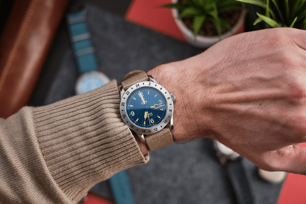 A tak, ten nie do końca dla mnie do nazwania niebieski, z pomarańczowym akcentem szkieletowej wskazówki 24 godzinnej, ma w sobie na tyle osobowości, że nie powszednieje nazbyt prędko na ręce ![]()