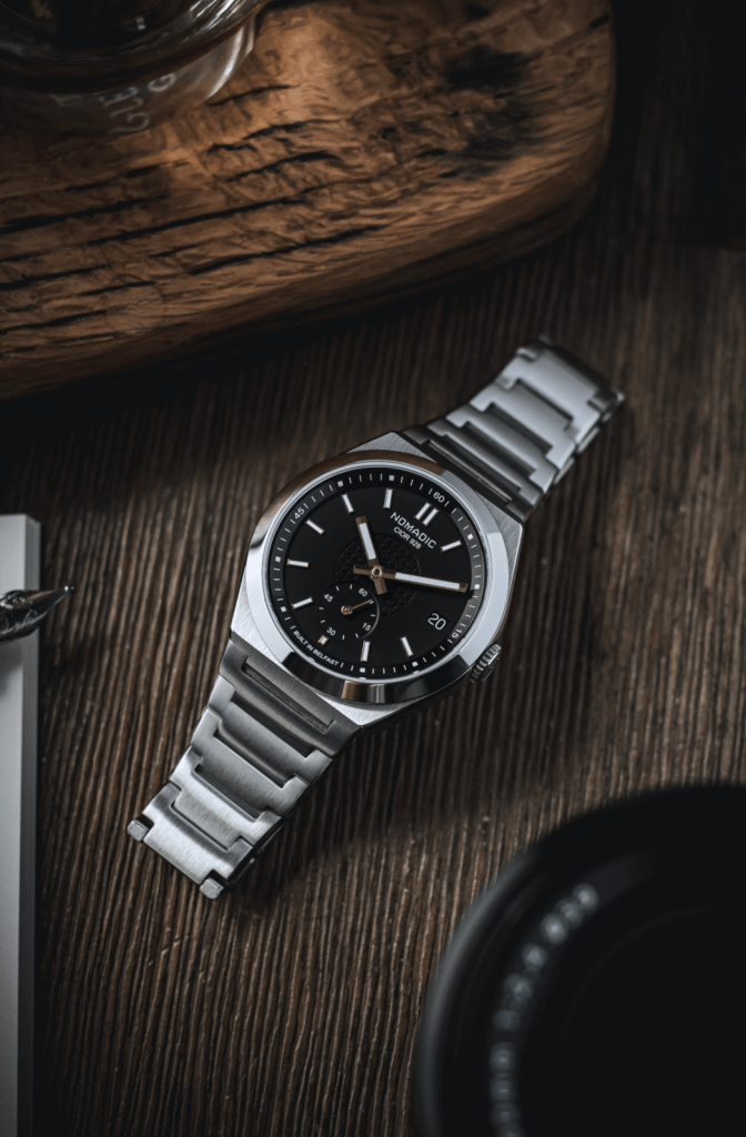 A dzisiaj dostałem maila, o nowym wypuście spod skrzydeł tej marki z Belfastu. Tym razem nazwali swój model Cíor 928 i uderzają ani chybi w falę trendu na zegarki ze zintegrowaną bransoletą. Trendu, który tak się mocno rozkręcił od czasu Tissota PRX’a i Citizena Tsuyosa. Nomadic w tym modelu idzie w ślady małego PRX’a i też postuluje 36 mm B/K jako rozmiar. W środku Sellita SW260-1, którą podobno regulują do +/- 5 [s/24h] i to właściwie tyle technikaliów.