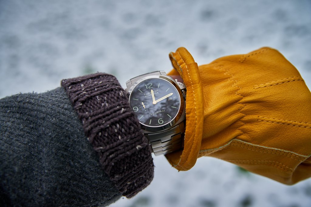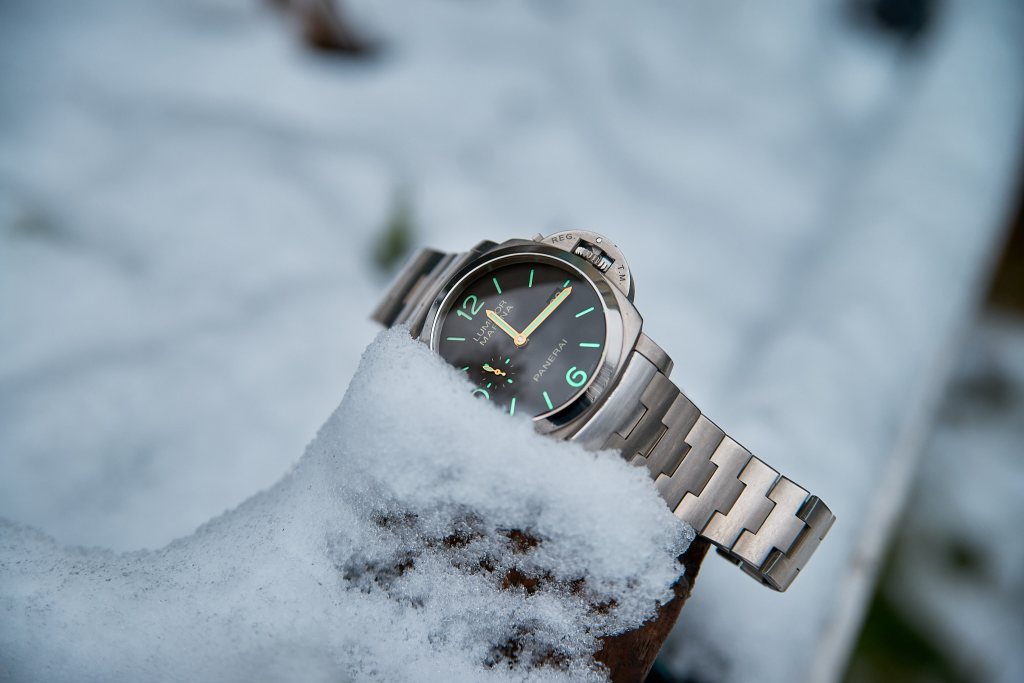 Idąc tropem tego jak Mateusz (z gin-gin watches) zazwyczaj pokazywał swojego Paneraia, i ja mojego uzbroiłem w jego tytanową bransoletę. Może nie jest to dla Pama jakiś taki naturalny anturaż, przynajmniej w moich oczach, to myślę że ma potencjał na to żeby się doń przyzwyczaić. A może nawet da się lubić 🙂