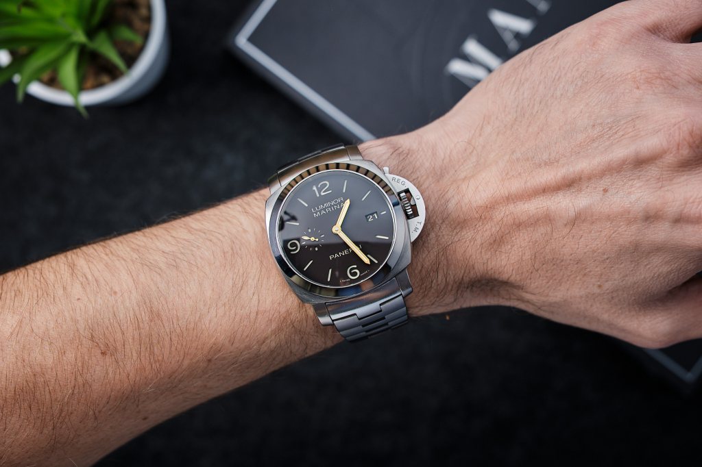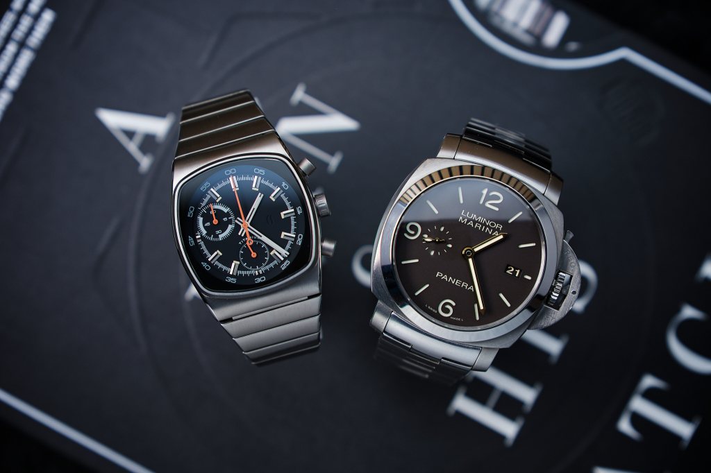 Ale zanim odebrał go jego nowy, mam nadzieję, że szczęśliwy właściciel to dalem rade jeszcze rzutem na taśmę zrobić mu kilka zdjęć. I to nie ot tako sobie – bo takich mam już wiele. Ale w towarzystwie drugiego zegarka z tytanu jaki mam w kolekcji. Panerai’a 352.