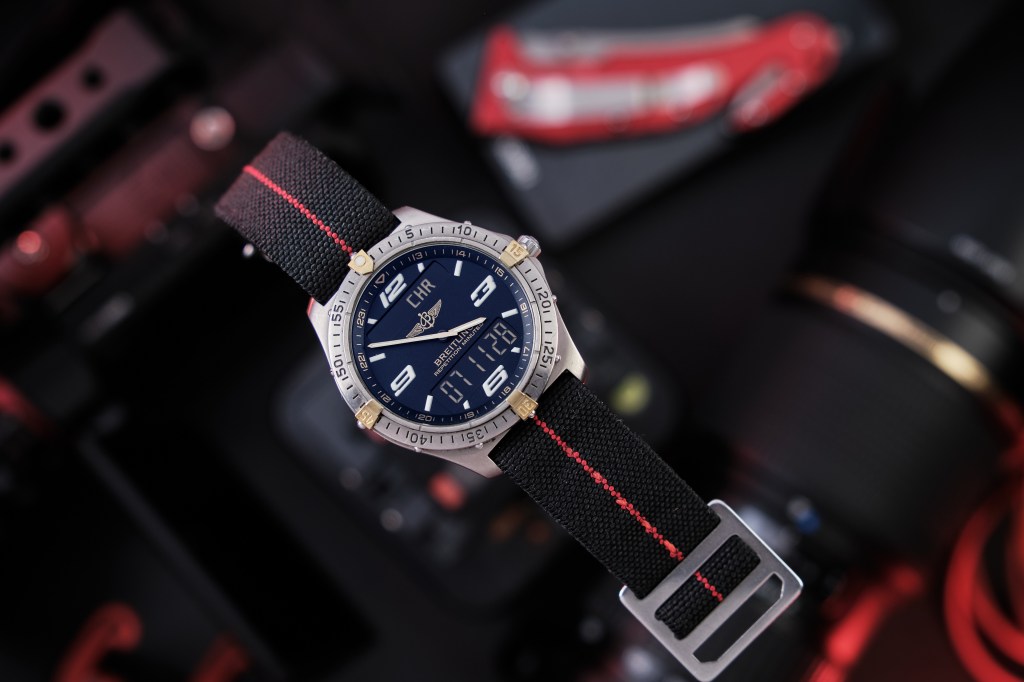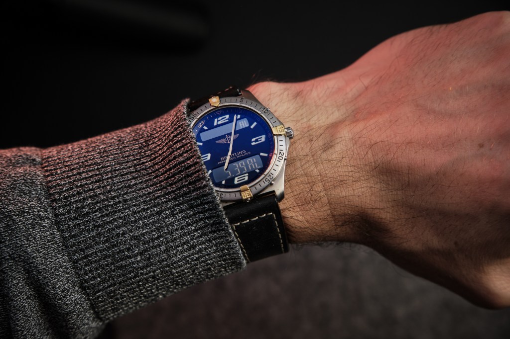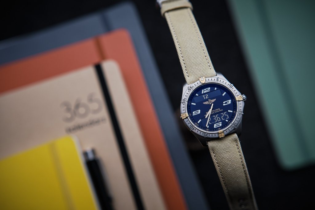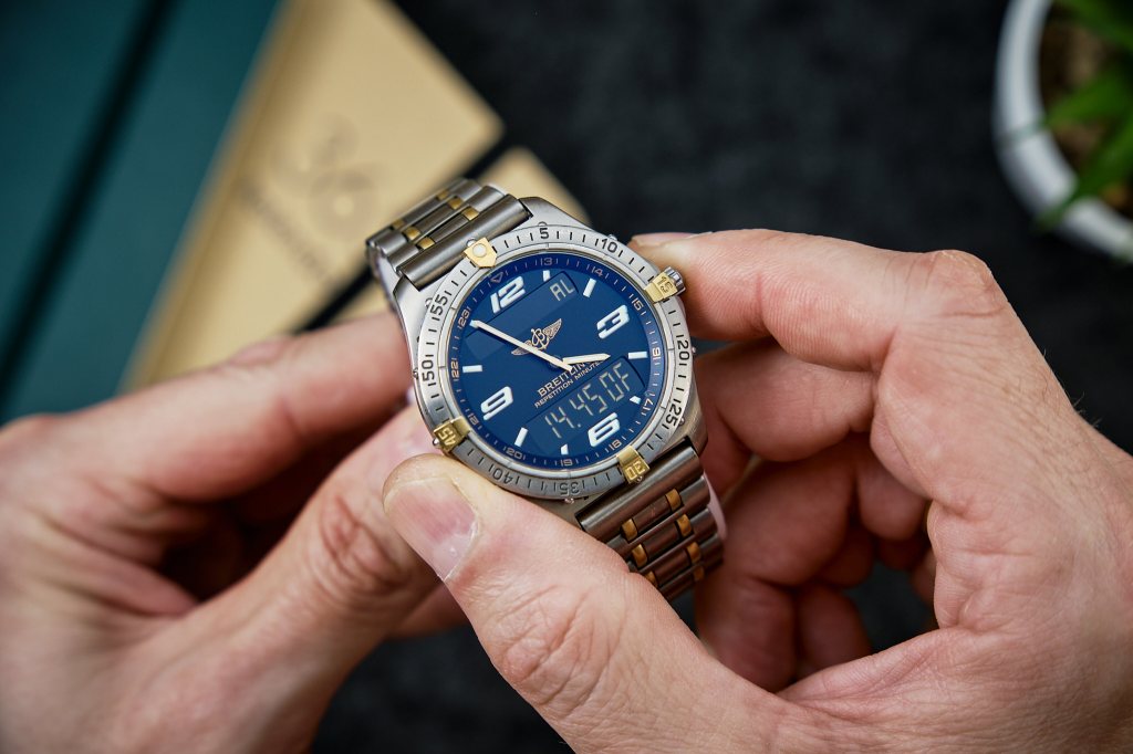 Ale zanim przekonałem się do tego zegarka, czy szerzej do całej koncepcji wizualnej, to już wcześniej miałem chwilę swoistej fascynacji innym Breitlingiem. Chodziło wtedy o tytułowego Aerospace. Zegarek z takiej niszy w tym naszym zegarkowym hobby. Niszy analogowo-cyfrowej. Niszy, która moim zdaniem jest jeszcze niedoceniana. Nie są to w końcu zegarki mechaniczne, a co za tym idzie nie można im przypisywać tego, prawie że magicznego miru. Są to niejako z natury rzeczy zegarki kwarcowe, a czas ich szerokiego doceniania jeszcze nie nastał.