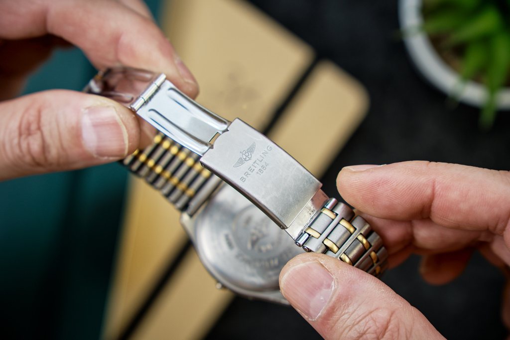 Jest to zegarek, mający jeszcze więcej tych breitlingowych cech, które winny zupełnie razem nie działać – a działają. Całą ta mnogość wizualna – krój pisma na indeksach pisany kursywą, wyświetlacze, logo, napisy, bezel i jego szewrony (na dodatek złotego koloru) i tak dalej. To powinno stworzyć chaos i zamieszanie.