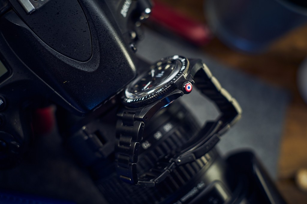 W końcy taka konkretna okazja zdarzyła się końcem roku 2024, gdyż pojawiła się ciakawa oferta na bazarku forum KMZiZ: jest dostępny francuski zegarek (a taki miał być z założenia; z napisem „FRANCE” na tarczy). Jest militarny oraz jeszcze dodatkowo w typie „nurek” (mój ulubiony typ zegarkow). Na dodatek wykończony w czarnej powłoce DLC, co jeszcze wzmacnia, wg. mnie, wojskowy styl (który uwielbiam). Poza tym mocne nawiązania vintage i piękna historia samego producenta – to już maksimum mych oczekiwań. Jakby tego było mało: dodatkowe smaczki w postaci: oznaczeń Francuskich Sił Powietrznych – Armée de l’air na tarczy i koronce oraz to przełamanie konwencji, że zegarek typu pilot jest nurkiem (a takie nieoczywistości wyjątkowo mnie w tym hobby pociągają).