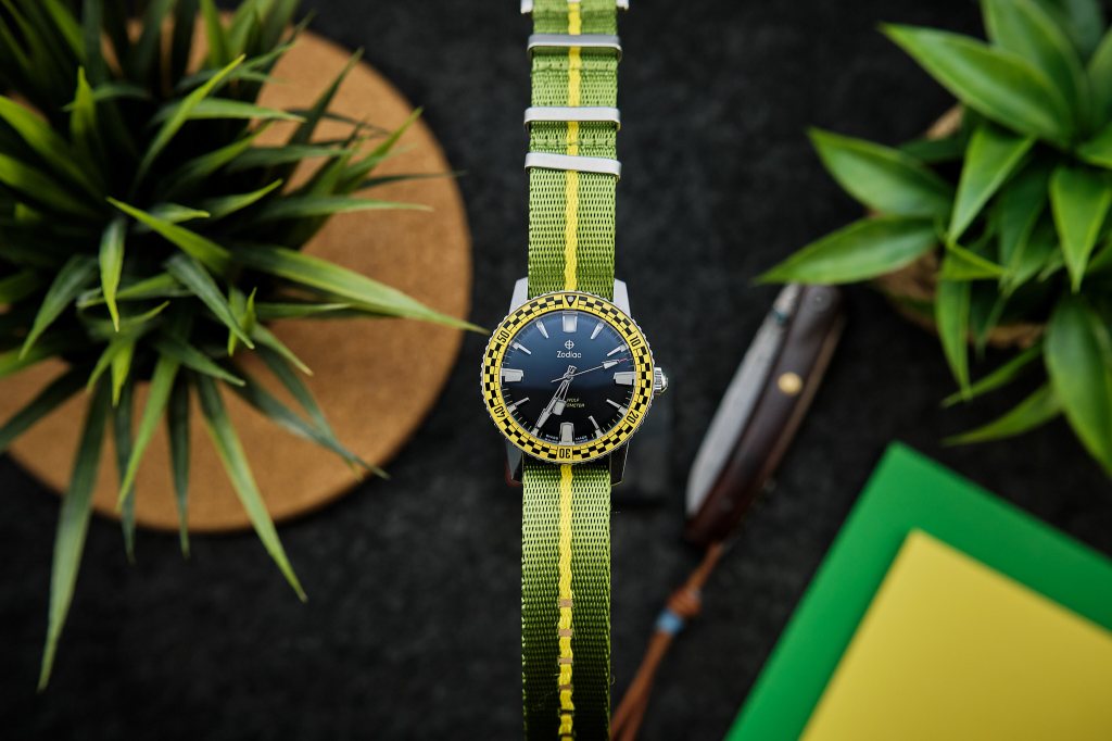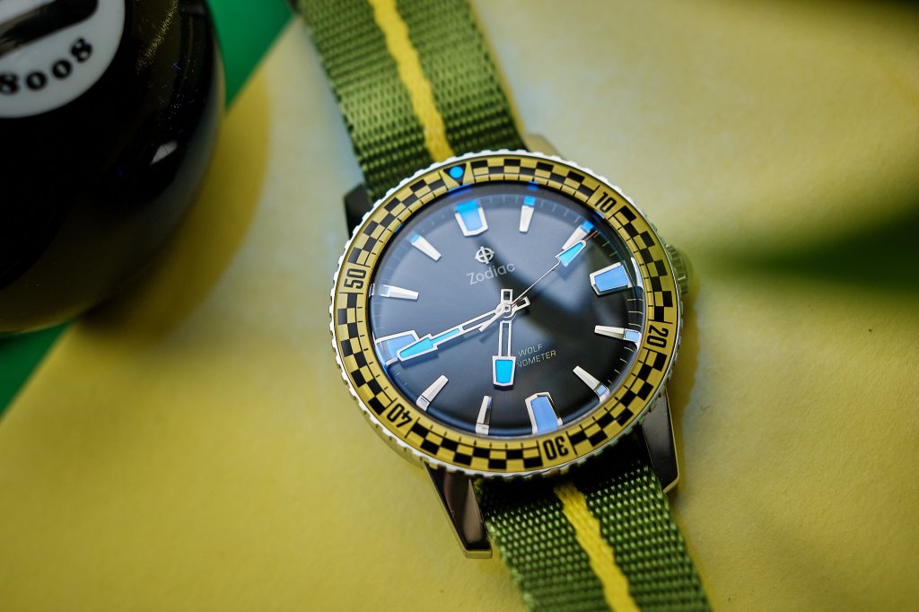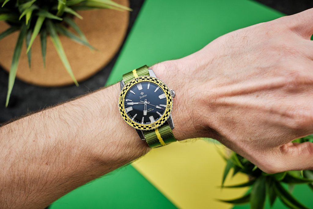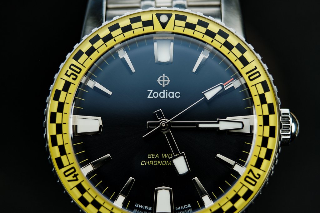 Bo to taka nieco merytorycznie nieuzasadniona wariacja nurka na temat bycia zegarkiem rally. A na dodatek ten poszatkowany rajdową szachownicą bezel jest w żółtym kolorze. No i co? Ni to pies ni to wydra! I właśnie dlatego nie byłby taki Zodiak moim wyborem.