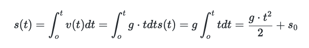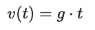Prędkość w takim ruchu to całka z przyspieszenia po czasie, a dla stałej wartości (tak możemy spokojnie założyć w naszych warunkach, pomijając zmianę wysokości, czy opór powietrza) przyspieszenia grawitacyjnego równego g, a konkretnie dla naszej pięknej planety g=9,81[m/s2] możemy zapisać, że: