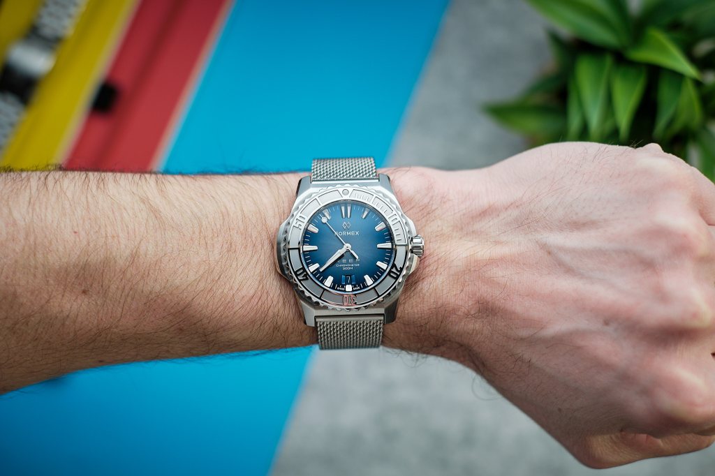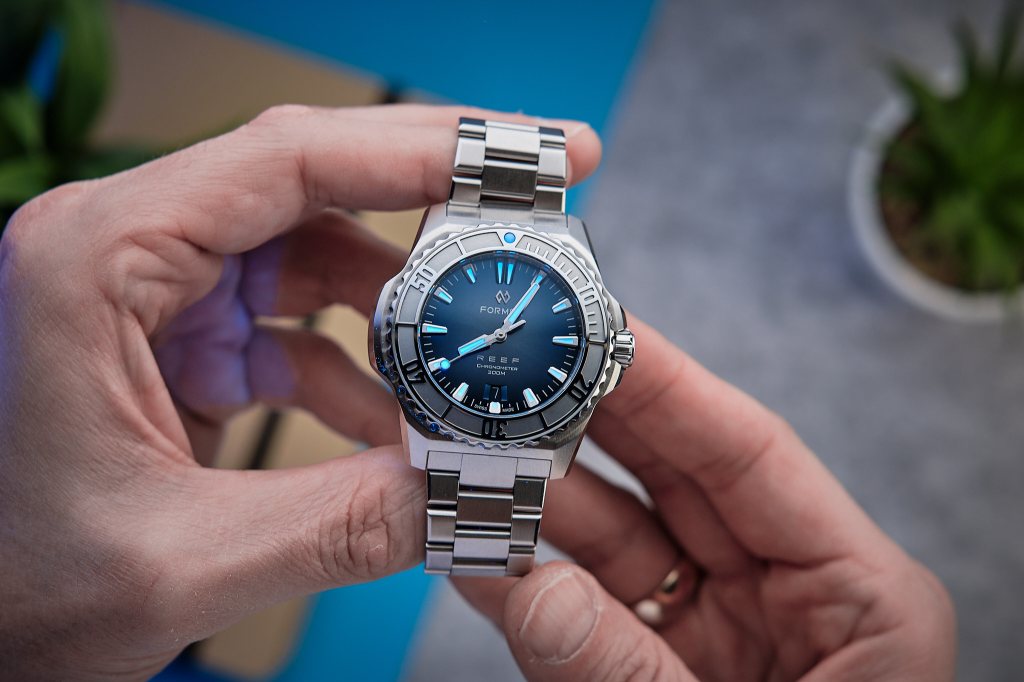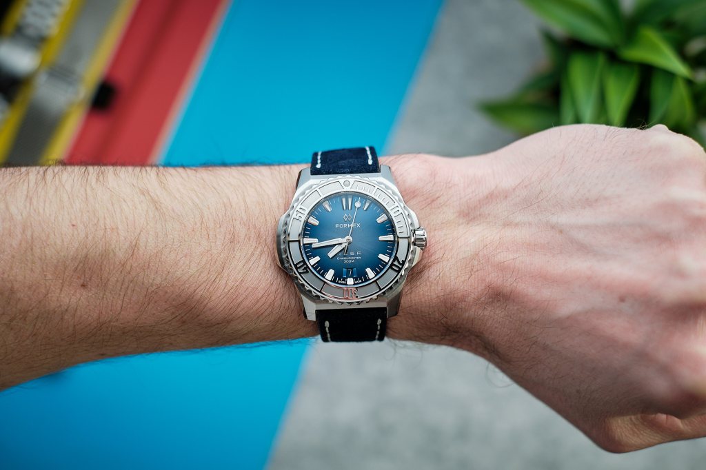 Jednak za to wszystko trzeba nieco zapłacić, bo Formex ze swoim Swiss Made na tarczy, 300m wodoszczelności i werkiem chronometrycznym katalogowo woła za Reffa około 10 000 zł. Czyli już na pewno nie jest to zawodnik z mikrobrandowego obszaru – dobre i tanie. Cóż taka wycena stawia go w szranki już z dużymi chłopcami. Bo to ceny nawet nieco większe niż typowo za nurka u Christophera Warda. Czy warto – cóż to już zależy jak każdy z nas na to patrzy. Na pewno pewnego rodzaju wadą i zaletą jednocześnie (zależy czy chcemy sprzedać czy kupić) jest to, że na rynku wtórnym ceny są już mocno zweryfikowane i możemy go znaleźć nawet poniżej 6 000zł.
