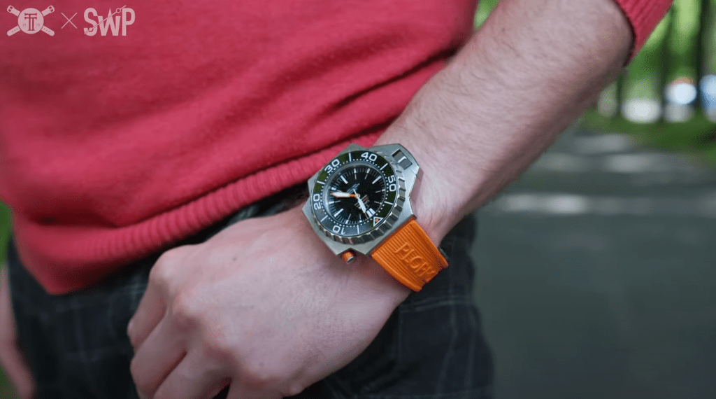 Oczywiście Reef to nie jest taki dziwak jak ta Omega. Jednak szczególnie na paskach jest w min nieco takiego charakteru. Chyba poza tym nieco poszerzanym kształtem koperty jest to też kwestia prostego przycięcia przy pasku. Ot tak mi się nieco kojarzy. A to jest fajne skojarzenie, bo od czasu jak miałem okazję PloProfa przymierzyć to mam do niego dużo sympatii.